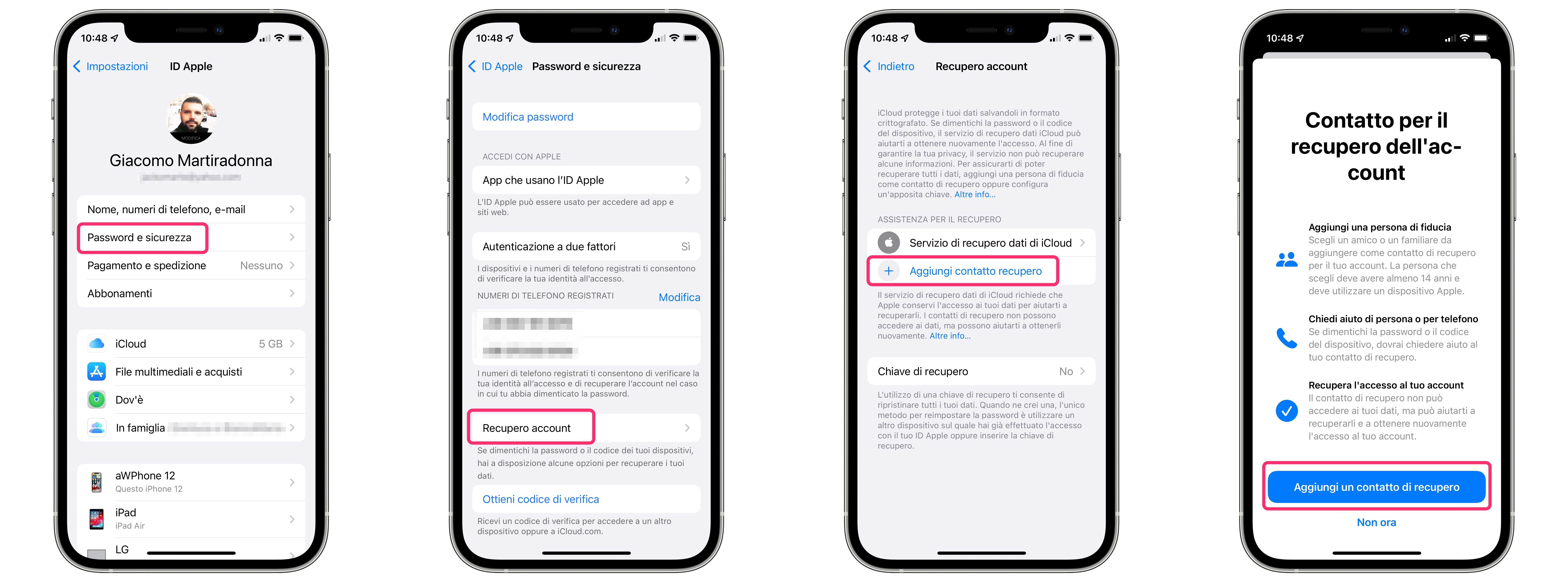 Per impostare un contatto di recupero, dopo aver aggiornato ad iOS 15, è sufficiente fare così: