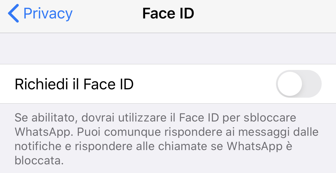 Proteggere WhatsApp Con Face ID o Touch ID