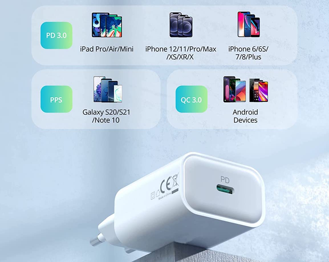 Acquista Caricabatterie USB- C rapido da 25 W [Kit da 2] a soli 13,99€