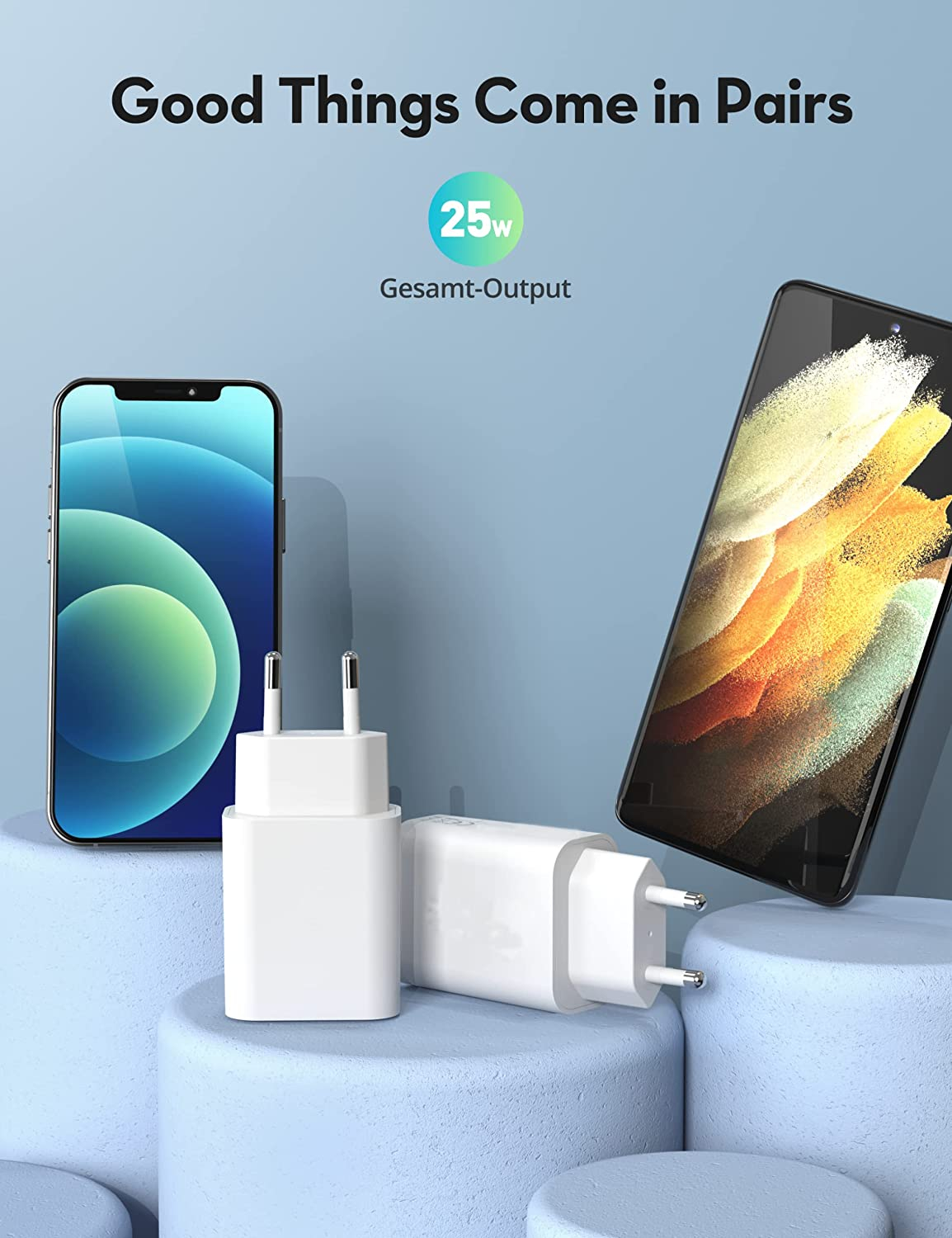 Acquista Caricabatterie USB- C rapido da 25 W [Kit da 2] a soli 17,20€