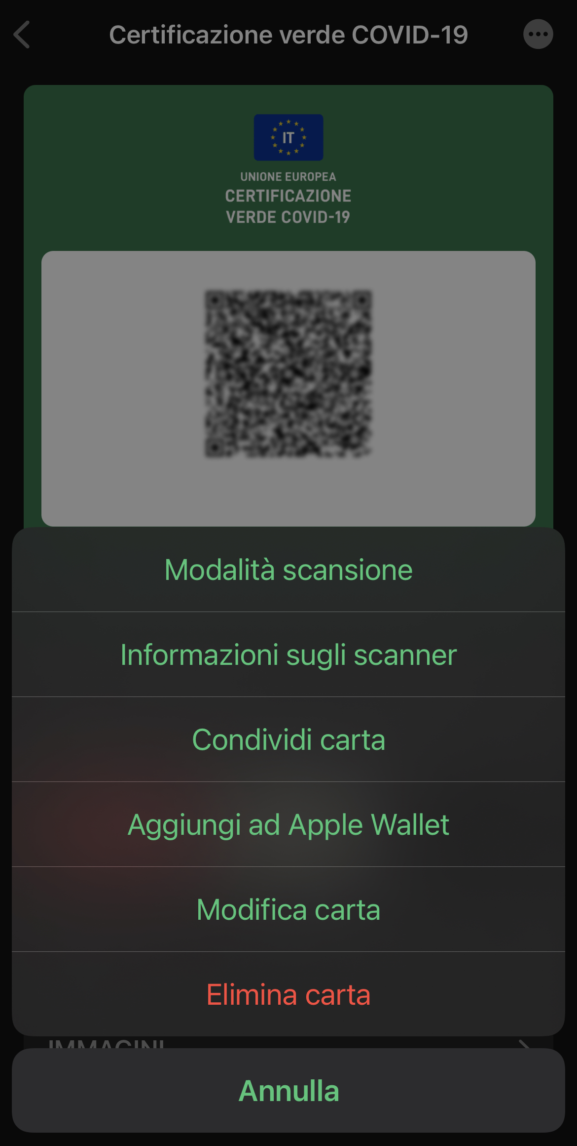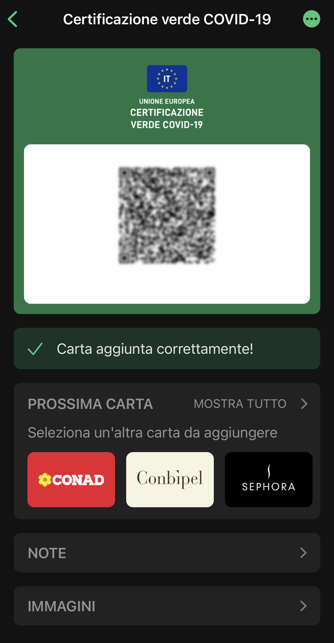 Il risultato finale sarà lo stesso: verrà creata una card col codice QR del vostro Green Pass e da lì potete inserirla nel Wallet di Apple.