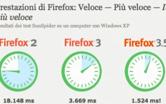Gli sviluppatori segnalano di aver incrementato la velocità di rendering: secondo i test SunSpider Firefox 3.5 è oltre il doppio più veloce rispetto alla versione precedente.
