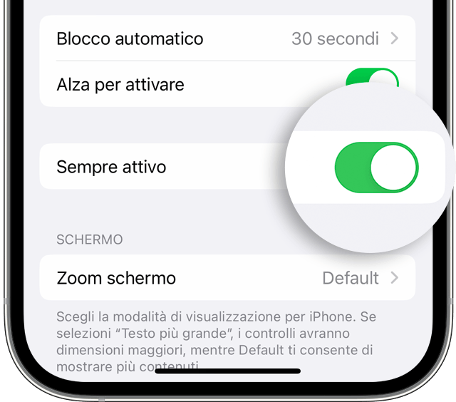 Basta aprire Impostazioni → Schermo e luminosità. → e disattivare Sempre attivo.