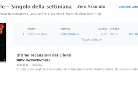Anche questa settimana iTunes Store regala un brano musicale. Questa volta è il turno degli Zero Assoluto, la band formata dai romani Thomas De Gasperi e Matteo Maffucci, con la canzone “Cos’è normale” (link iTunes Store).