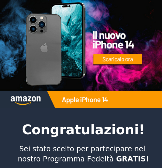 Guardate l’immagine qui in alto. L’abbiamo appena ricevuta in Redazione e promette di prenotarsi ad un fantomatico programma fedeltà per “scaricare” iPhone 14. La grafica è accattivante, e la presenza del logo Amazon rassicurante. Ma fossimo in voi, non cliccheremmo e cestineremmo la mail.