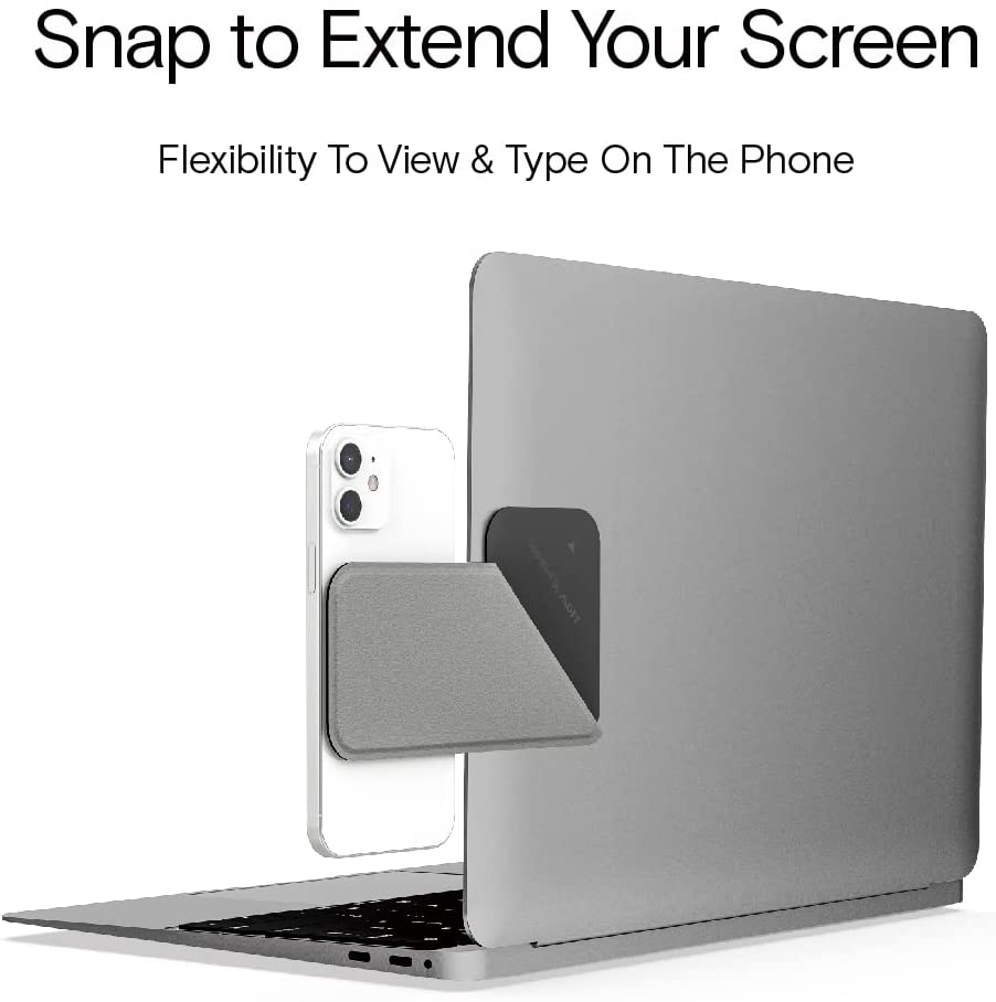 Su tratta in sostanza di una sorta di linguetta magnetica che si attacca al display del computer e a cui si può agganciare qualunque smartphone inclusi iPhone 12 e iPhone 13; non occupa praticamente spazio, e passa davvero inosservato.