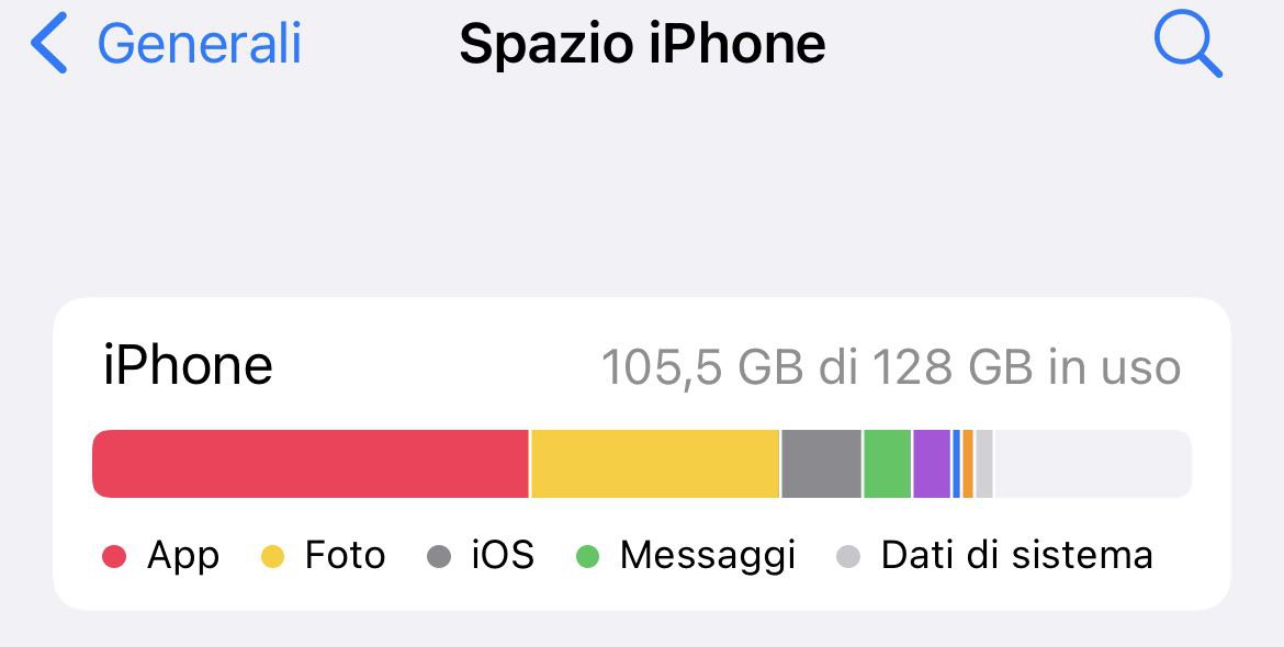 Prima di tutto, apri Impostazioni → Generali → Spazio iPhone per avere a colpo d’occhio lo stato della situazione. Il grafico ti mostrerà dove intervenire, tra messaggi, app, foto e musica. E se un’app consuma troppo spazio d’archiviazione, eliminala e reinstallala.