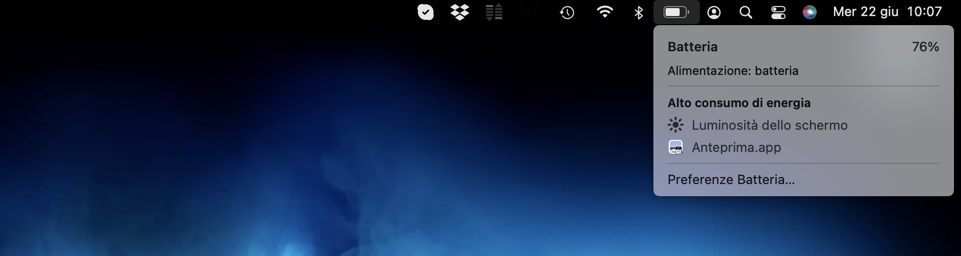 Di tanto in tanto, butta un occhio ai consumi. Basta fare clic sull’icona della batteria (o aprire Preferenze di Sistema → Batteria) per avere l’elenco delle applicazioni che consumano troppa energia.
