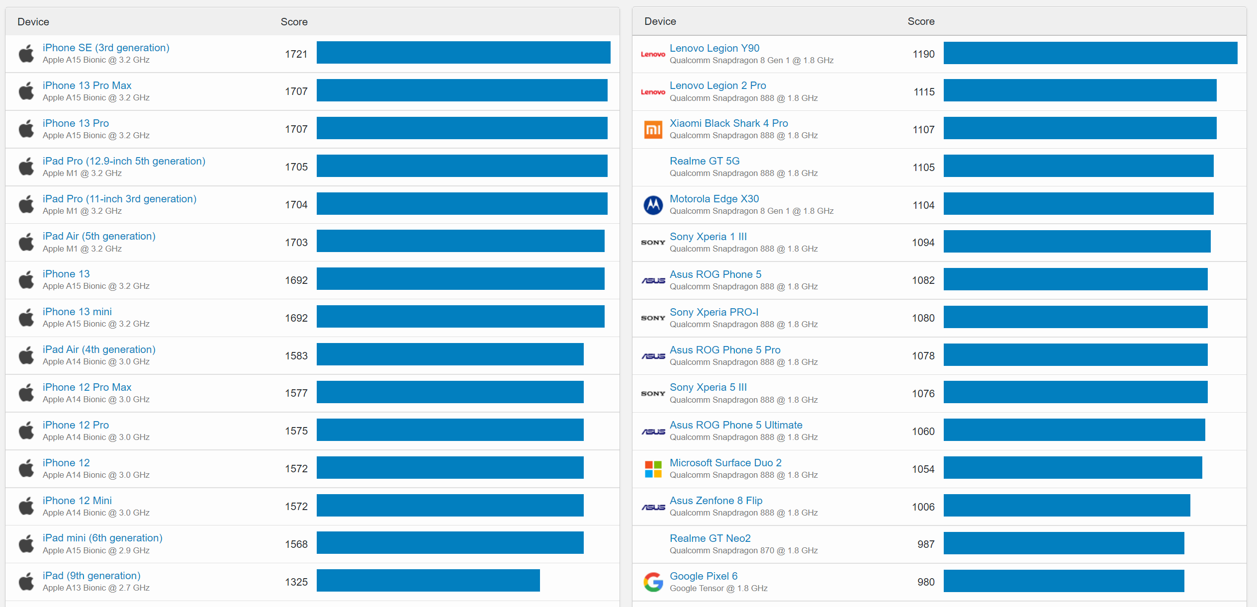 Una chicca finale. L’ultimo modello di Google, il Pixel 6a ha prestazioni single-core e multi-core paragonabili a un iPhone XR di quattro anni fa. Per dire.