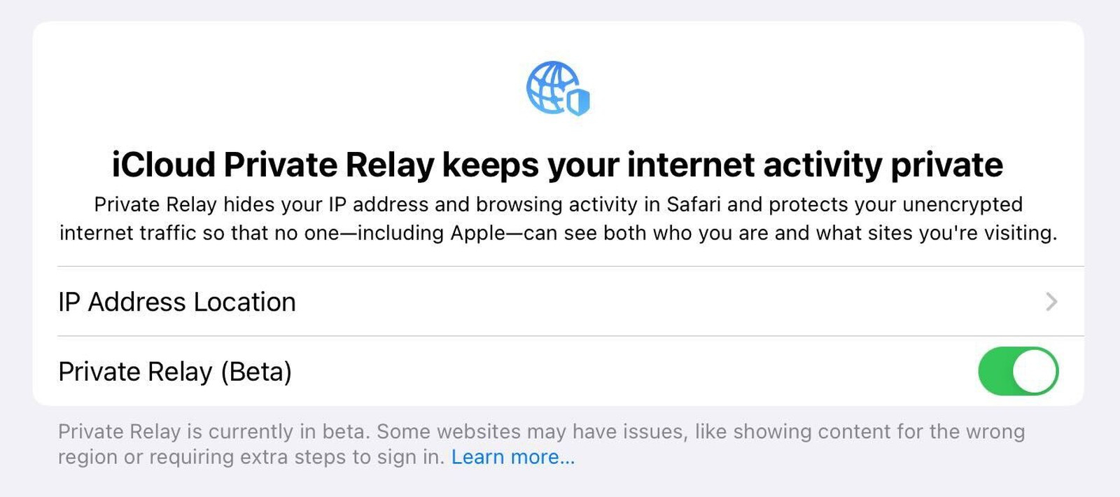 Apple ha ufficialmente dichiarato che il Relay Privato funziona esclusivamente quando si naviga in Safari, sia sui siti HTTP che HTTPS. Tuttavia, la protezione verrà meno quando si attiva una VPN o si naviga su rete locale, come ad esempio le LAN interne di scuole, uffici o casa propria.