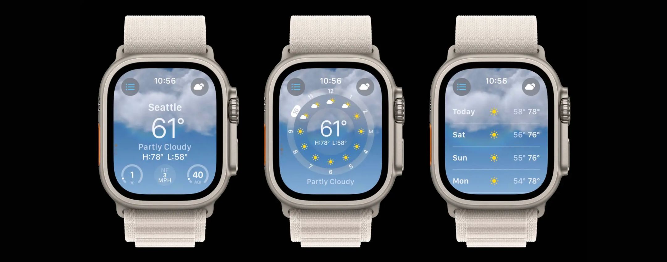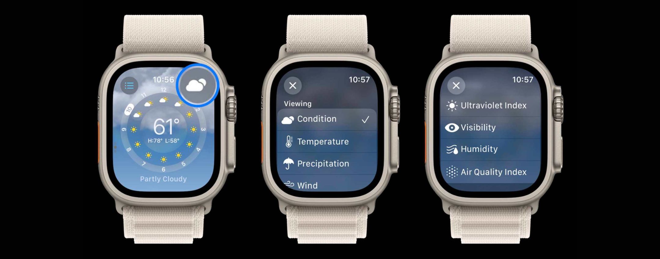 Esplora le funzionalità e l’interfaccia della nuova app Apple Watch Weather in watchOS 10