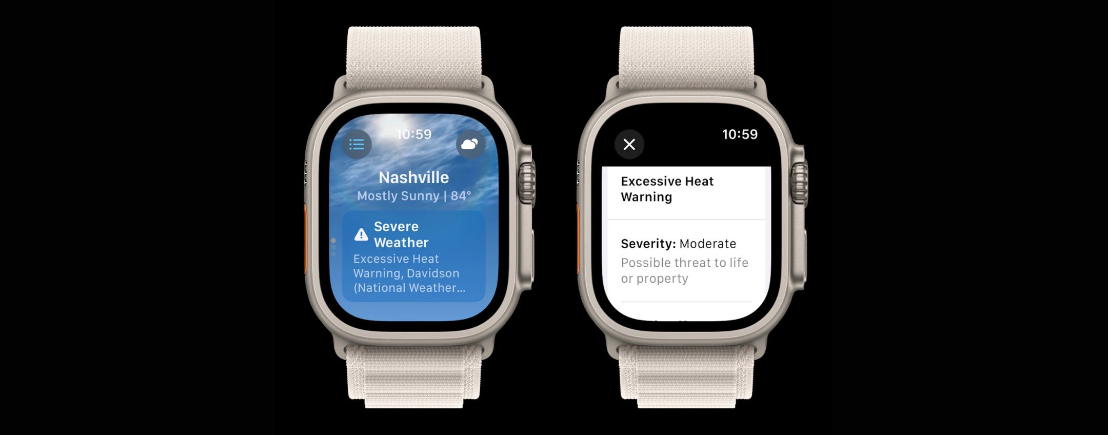 La nuova app Apple Watch Weather in watchOS 10 offre una panoramica completa delle previsioni meteorologiche, sia a breve termine che a lungo termine, direttamente sul polso dell’utente. Inoltre, l’app è in grado di visualizzare gli avvisi di maltempo nella schermata principale, fornendo agli utenti la possibilità di leggere l’annuncio completo.