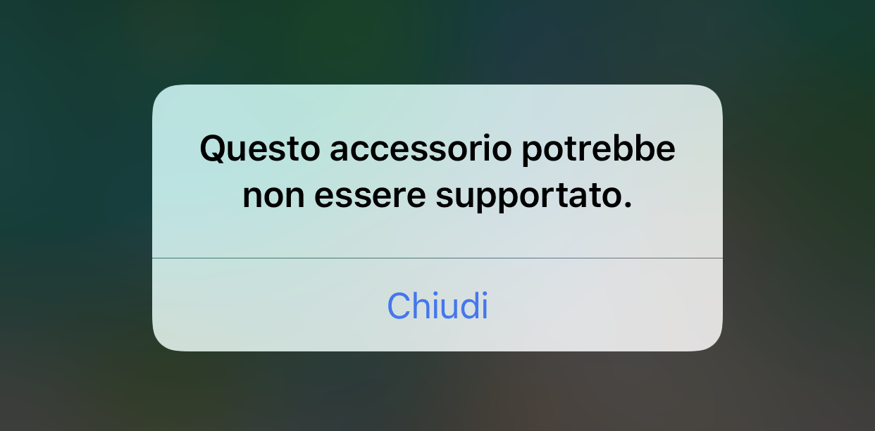 "Questo accessorio potrebbe non essere supportato:" Apple nei guai per il messaggio