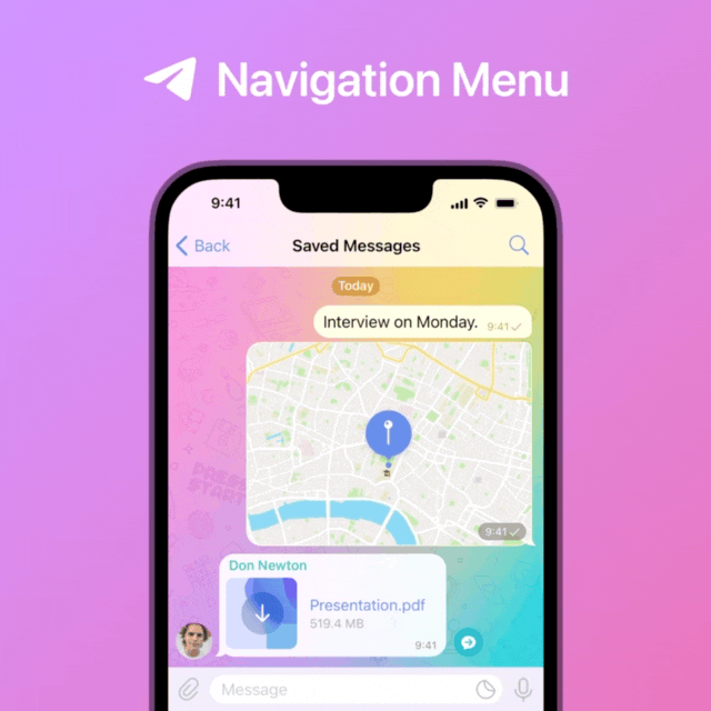 Un nuovo pulsante di navigazione tra le chat recenti permette di tornare indietro ad una specifica chat, mentre passi da un canale non letto all’altro o ti sposti tra le chat. Le chat aperte da messaggi inoltrati, link, username, profili, e così via saranno aggiunte automaticamente alla lista.