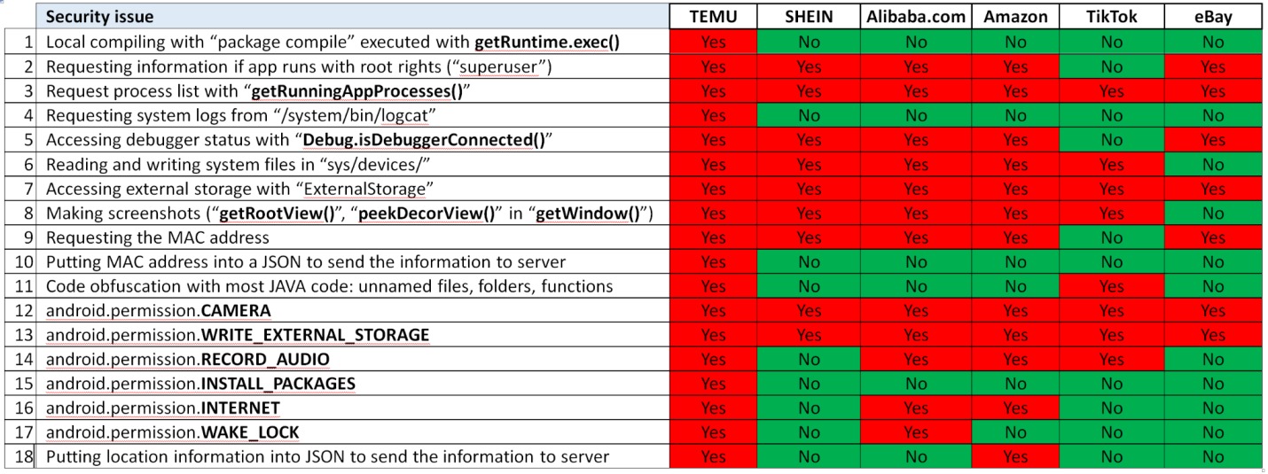 Si sostiene che Temu possa accedere a vari elementi del dispositivo dell’utente, come fotocamera, microfono, posizione GPS e memoria interna, inviando poi i dati raccolti a server esteri. Alcuni esperti hanno definito Temu come un’app ad alto rischio per la sicurezza degli utenti.