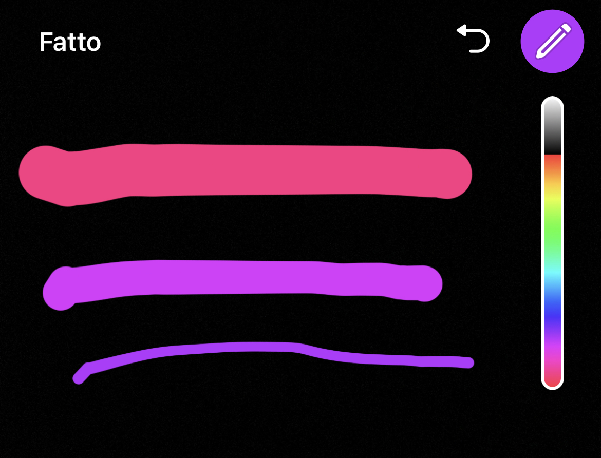 - Muoviti verticalmente sullo slider colorato di destra per cambiare colore del tratto, e orizzontalmente (verso destra o sinistra) per modificarne lo spessore.
