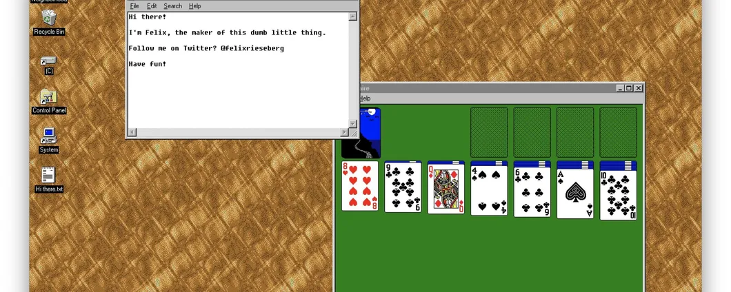 Uno sviluppatore però ha fatto di più. Felix Rieseberg ha creato una versione di Windows 95 impacchettata come un’app. In altre parole, non è necessario installare un software aggiuntivo di virtualizzazione su cui a sua volta installare Windows 95: basta un doppio clic sull’icona per avviarlo istantaneamente.